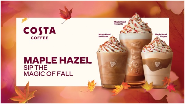 મેપલ હેઝલ મેનુ કોસ્ટા કોફી આઉટલેટ્સ ખાતે ઉપલબ્ધ છે, જે ભારતભરમાં અને અવ્વલ ડિલિવરી મંચોમાં 12મી ઓક્ટોબરથી ઉપલબ્ધ છે.