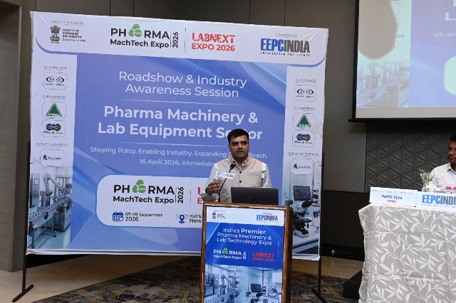 અમદાવાદ, ગુજરાત | ૨૩ એપ્રિલ ૨૦૨૬ — વાણિજ્ય અને ઉદ્યોગ મંત્રાલયના માર્ગદર્શન હેઠળ EEPC ઇન્ડિયાએ અમદાવાદમાં ફાર્મા મશીનરી અને લેબોરેટરી ઇક્વિપમેન્ટ સેક્ટર વિષયક રોડ શો તથા ઇન્ડસ્ટ્રી અવેરનેસ સેશનનું આયોજન કર્યું હતું, જે આગામી ફાર્મા મેકટેક લેબનેક્સ્ટ એક્સ્પો 2026 માટે પૂર્વ તૈયારીરૂપ હતું.