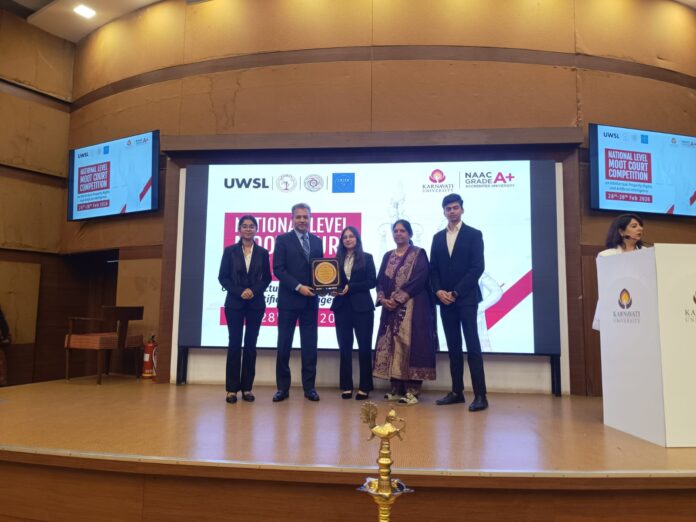 ગાંધીનગર, ગુજરાત | ૨૮ ફેબ્રુઆરી ૨૦૨૬ — કર્ણાવતી યુનિવર્સિટીની ‘સ્કૂલ ઓફ લો’ (UWSL) દ્વારા ગુજરાત કાઉન્સિલ ઓન સાયન્સ એન્ડ ટેકનોલોજી (GUJCOST) ના સહયોગથી તારીખ 26 ફેબ્રુઆરી થી 28 ફેબ્રુઆરી 2026 દરમિયાન નેશનલ લેવલ મૂટ કોર્ટ કોમ્પિટિશન-2026 નું ભવ્ય આયોજન કરવામાં આવ્યું છે. આ સ્પર્ધા દેશભરની પ્રતિષ્ઠિત લો સ્કૂલોના તેજસ્વી વિદ્યાર્થીઓ માટે વકીલાત અને કાયદાકીય સંશોધનનો એક ઉત્કૃષ્ટ મંચ પૂરો પાડી રહી છે.