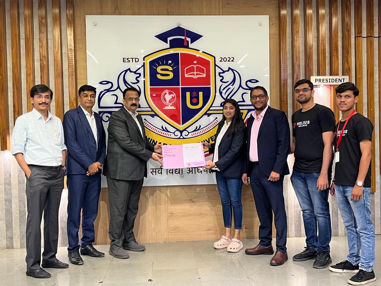 હેલિયસ વેલનેસ પ્રાઇવેટ લિમિટેડ એ એક પ્રમુખ હેલ્થકેર ટેકનોલોજી કંપની છે જે AI-આધારિત પ્રેવેન્ટીવે કેર, ડિજિટલ આરોગ્ય અને હૃદય આરોગ્ય પર ધ્યાન કેન્દ્રિત કરે છે. આ સહયોગનો હેતુ યુનિવર્સિટીની શૈક્ષણિક કુશળતાને હેલિયસ વેલનેસના ટેકનોલોજી અનુભવ સાથે જોડવાનો છે જેથી આરોગ્યસંભાળ શિક્ષણ, સંશોધન અને નવીનતામાં વધારો થાય.