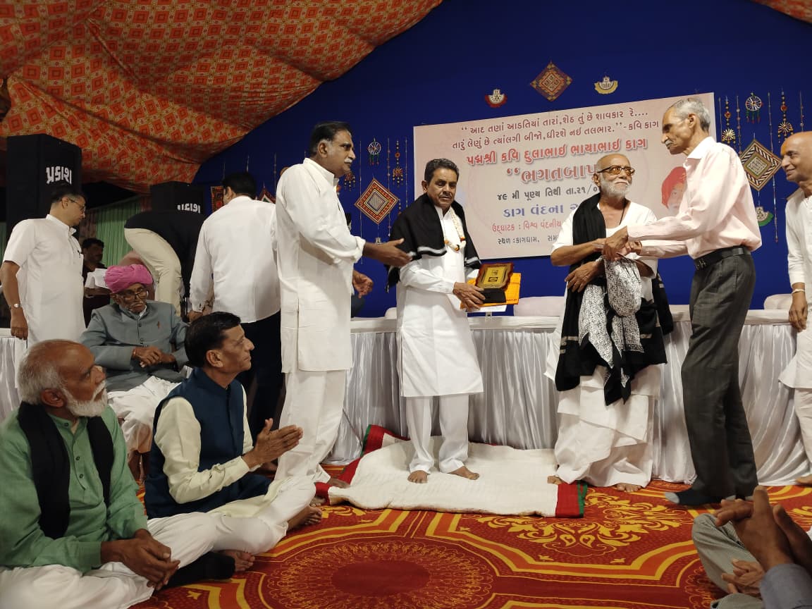 પદ્મશ્રી કવિ શ્રી દુલા કાગ ‘કાગબાપુ’ પુણ્યતિથિ કાગચોથ પ્રસંગે શ્રી મોરારિબાપુના સાનિધ્ય સાથે સાહિત્યકાર, વિદ્વાનો અને મહાનુભાવોનીઉપસ્થિતિમાં લોકસાહિત્ય સન્માન સાથે કાગ વંદના સમારોહ યોજાઈ ગયો.