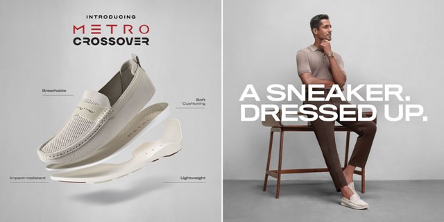 મેટ્રો ક્રોસઓવર કલેક્શન હવે દેશભરમાં મેટ્રો શૂઝ સ્ટોર્સ પર અને ઓનલાઈન ઉપલબ્ધ છે <https://www.metroshoes.com/crossover>