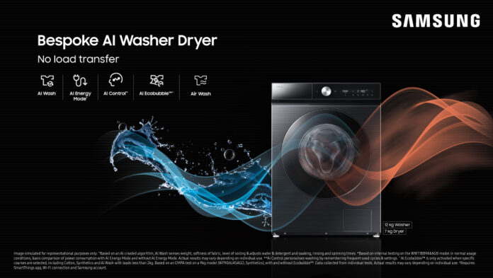 ગુરુગ્રામ, ભારત | ૦૩ સપ્ટેમ્બર ૨૦૨૫: ભારતની સૌથી મોટી કન્ઝ્યુમર ઇલેક્ટ્રોનીક્સ બ્રાન્ડ સેમસંગએ આજે પોતાના નવા Bespoke AI Washer Dryer(બેસ્પોક AI વોશર ડ્રાયર) (12KG વોશ / 7KG ડ્રાય)ને લોન્ચ કર્યુ હોવાની ઘોષણા કરી છે. જેની ડિઝાઇન આધુનિક ભારતીય ઘરો માટે બનાવવામાં આવી છે. સેમસંગનું નવું 12KG વોશર ડ્રાયર કોમ્બો નો-લોડ ટ્રાન્સફર, ઓલ-વેધર લોન્ડ્રી અને ઇન્ટેલિજન્ટ ફેબ્રિક કેરજેવી સુગમતાઓ એક જ ઇન્ટીગ્રેટેડ યુનિટમાં લાવે છે, જે તેને મોટા પરિવારો અને શહેરી ઘરો બનાવવામાં આવેલ જગ્યા બચાવતુ ઉપકરણ બનાવે છે.