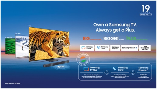પ્લસ કેમ્પેઈન લાર્જ સ્ક્રીન્સ માટે વધતી માગણી અને વિશ્વસનીય આફ્ટર- સેલ્સ સપોર્ટની જરૂર માટે ભારતની વિવિધ ઉપભોગ શૈલીઓ માટે વિકસાવવામાં આવી છે. AI-પાવર્ડ વ્યુઈંગ બહેતરીઓ, વિસ્તારિત સોફ્ટવેર અપગ્રેડ્સ અને સેમસંગ નોક્સ વોલ્ટ જેવા ફીચર્સ થકી યુઝર ડેટા અને ગોપનીયતાનું રક્ષણ કરવા માટે સેમસંગ નોક્સને જોડીને સેમસંગે ભવિષ્યલક્ષી ગ્રાહક રોકાણો કર્યાં છે.
