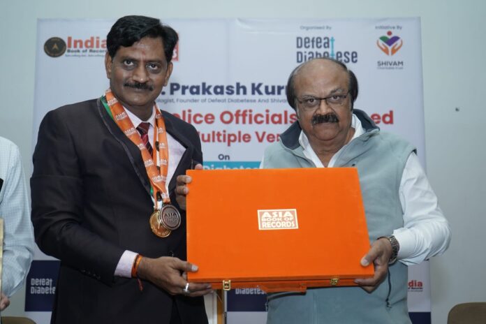 ગુજરાત, અમદાવાદ | ૨૧ નવેમ્બર ૨૦૨૫ – શિવમ ચેરિટેબલ ટ્રસ્ટ દ્વારા અમદાવાદ શહેર પોલીસ કર્મચારીઓના સ્વાસ્થ્યના રક્ષણ માટે શરૂ કરવામાં આવેલ મહત્ત્વકાંક્ષી કાર્યક્રમ ‘મિશન ડિફીટ ડાયાબિટીઝ’ અંતર્ગત નોંધાયેલી વિશેષ સિદ્ધિ બદલ તેમને ‘ઈન્ડિયા બુક ઓફ રેકોર્ડ’ દ્વારા સન્માનિત કરવામાં આવ્યા છે.  અમદાવાદ મેડિકલ એસોસિએશન હોલ ખાતે યોજવામાં આઆવેલા સન્માન સમારોહમાં તેની સિદ્ધિઓ બદલ ટ્રસ્ટને સર્ટિફિકેટ આપીને સન્માન કરવામાં આવ્યું હતું.