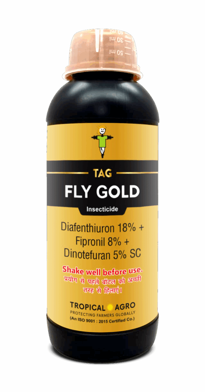 ભારત, અમદાવાદ | ૧૯મી નવેમ્બર ૨૦૨૫ — ટ્રોપિકલ એગ્રો, ભારતમાં સૌથી મોટી સ્વદેશી એગ્રી–ટેક પાક સંભાળ અને માટી સંભાળ કંપનીએ TAG FLY GOLD લોન્ચ કરવાની જાહેરાત કરી છે. આ પેટન્ટેડ કીટનાશક ફોર્મ્યુલેશન_thrips_, ફળ બોરરો, વ્હાઇટફ્લાય, માઇટ્સ અને અન્ય મુખ્ય ચૂસક જીવાતો સામે ઉચ્ચ સ્તરની અસરકારકતા આપવા માટે ડિઝાઇન કરવામાં આવ્યું છે — જે પાકના આરોગ્ય, ઉપજ અને નફાકારકતાને નોંધપાત્ર રીતે અસર કરે છે.