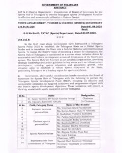 ગુજરાત, અમદાવાદ | ૦૪ ઓગસ્ટ ૨૦૨૫: તેલંગાણાના મુખ્યમંત્રી રેવંત રેડ્ડીના સક્રિય નેતૃત્વ હેઠળ, રાજ્ય સરકારે રમતગમતના વિકાસને પ્રાથમિકતા આપી છે. રમતગમત નીતિ 2025 હેઠળ, સરકારનો ઉદ્દેશ્ય પાયાના સ્તરે પ્રતિભાને પ્રોત્સાહન આપવાનો અને રાજકારણથી દૂર એક મજબૂત રમતગમત પ્રણાલી બનાવવાનો છે. આ દિશામાં એક મોટું પગલું ભરતા, સરકારે તેલંગાણા સ્પોર્ટ્સ હબ માટે બોર્ડ ઓફ ગવર્નર્સની રચના કરી છે.